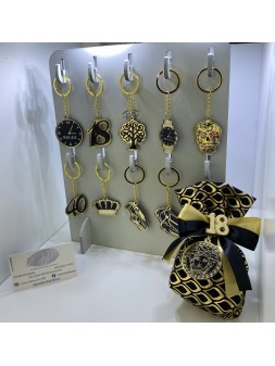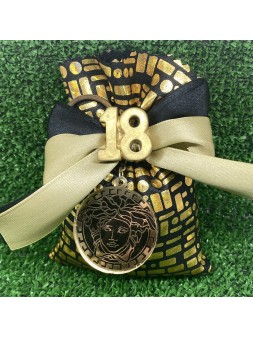 Sacchetto artigianale decorato nero e oro con portachiavi a...